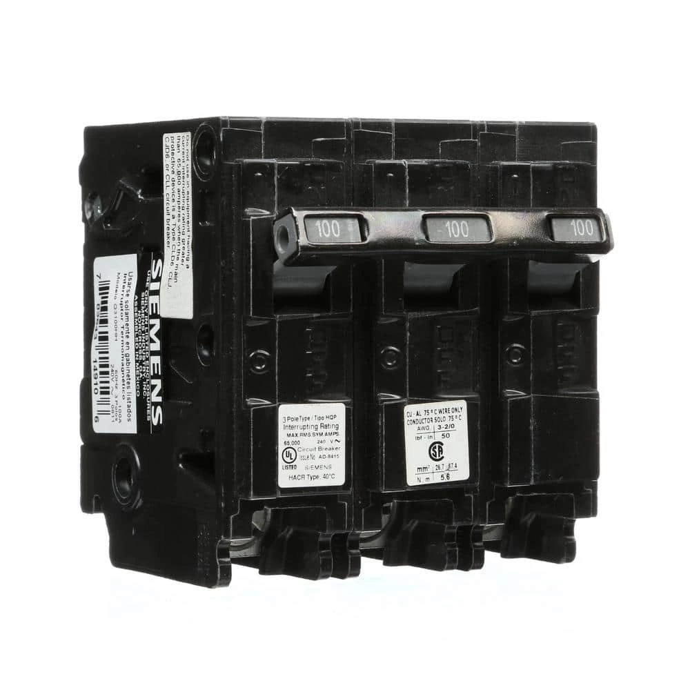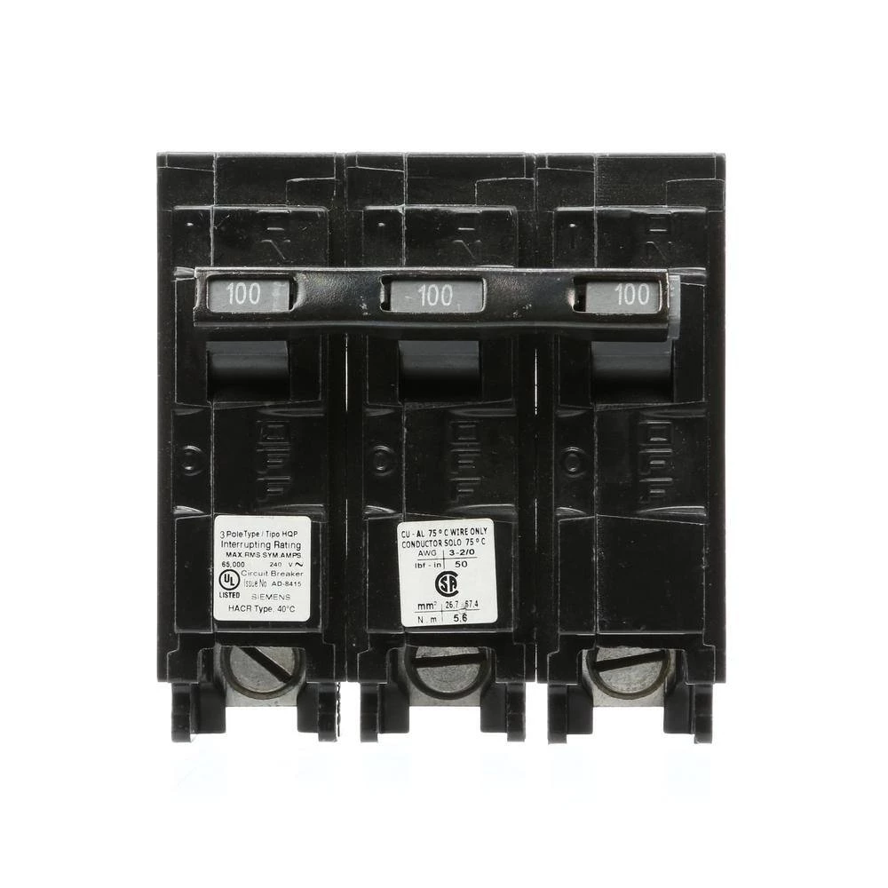 Siemens Type QP Triple Pole Circuit Breaker are rated for 100 Amp and 120/240-Volt. This breaker has a 65 KAIC interrupt rating and is for use in Siemens panels only. The breaker is plug in style. Siemens strongly recommends against the use of “used” breakers. The installation of used breakers in a Siemens panel will void the warranty on the panel. Siemens does not sell used breakers and has not approved any 3rd party sellers to do so.
