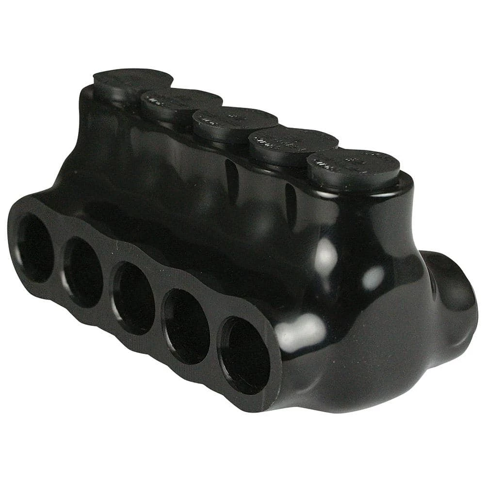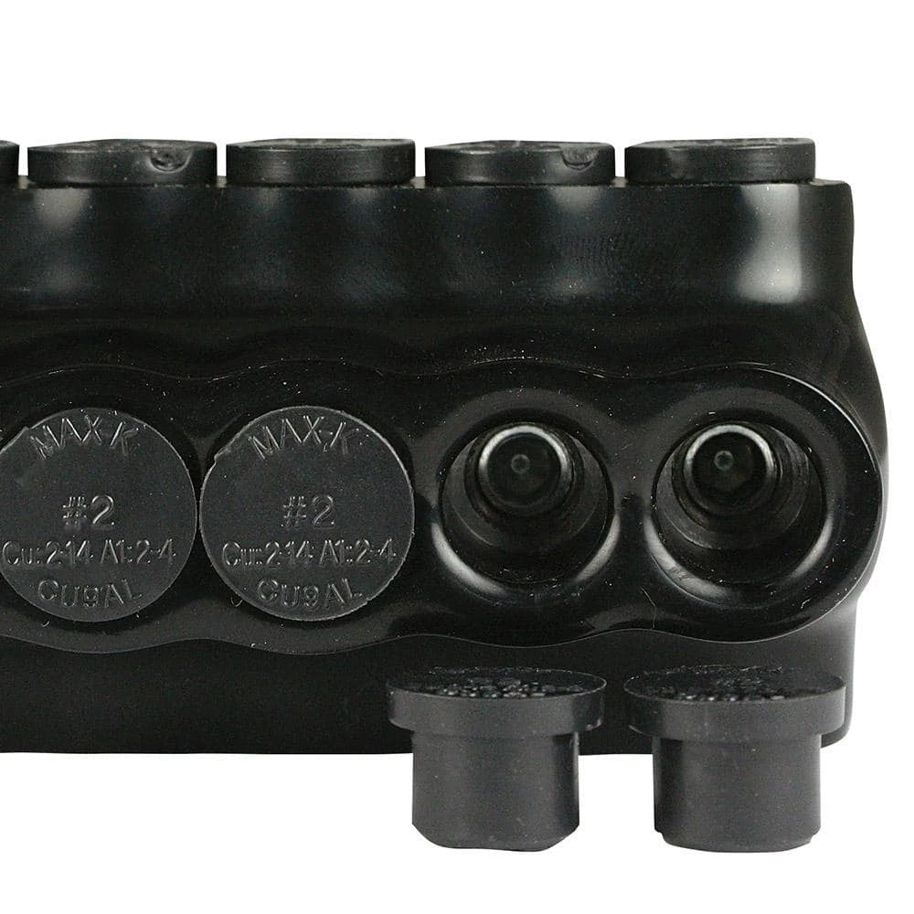 AICD2-5 is a 5-port insulated multi tap connector made from high strength 6061-T6 aluminum, dipped in black dielectric plastisol and prefilled with an oxide inhibitor to prevent rusting. Plugs are marked with minimum and maximum wire size for easy identification, cool temperature rated at -45°C, and accepts 14 to 2 AWG CU or AL solid or stranded wires. Using a multi tap connector saves time compared to wrapping wires with electrical tape. This insulated connector is cULus Listed, UL Listed 486B and rated at 600-Volt.