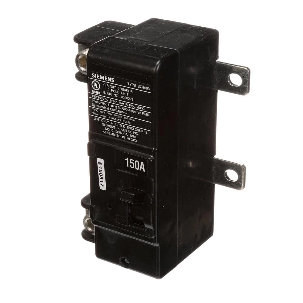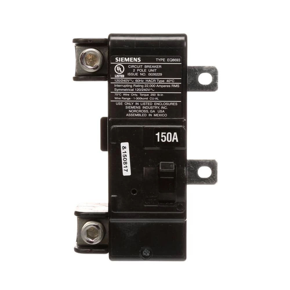 The Siemens Industry Inc. 150 Amp Double-Pole Main Breaker Converter Kit is used to transform a main lug to a main breaker in Ultimate-style load centers. Main breaker is 150 Amp 120/240-Volt, and has a 22 kA interrupting rating. Allows for a means of disconnect in a single switch for all circuits in your Siemens Load Center.