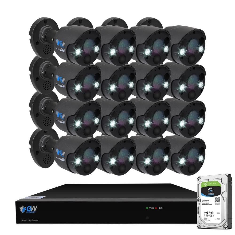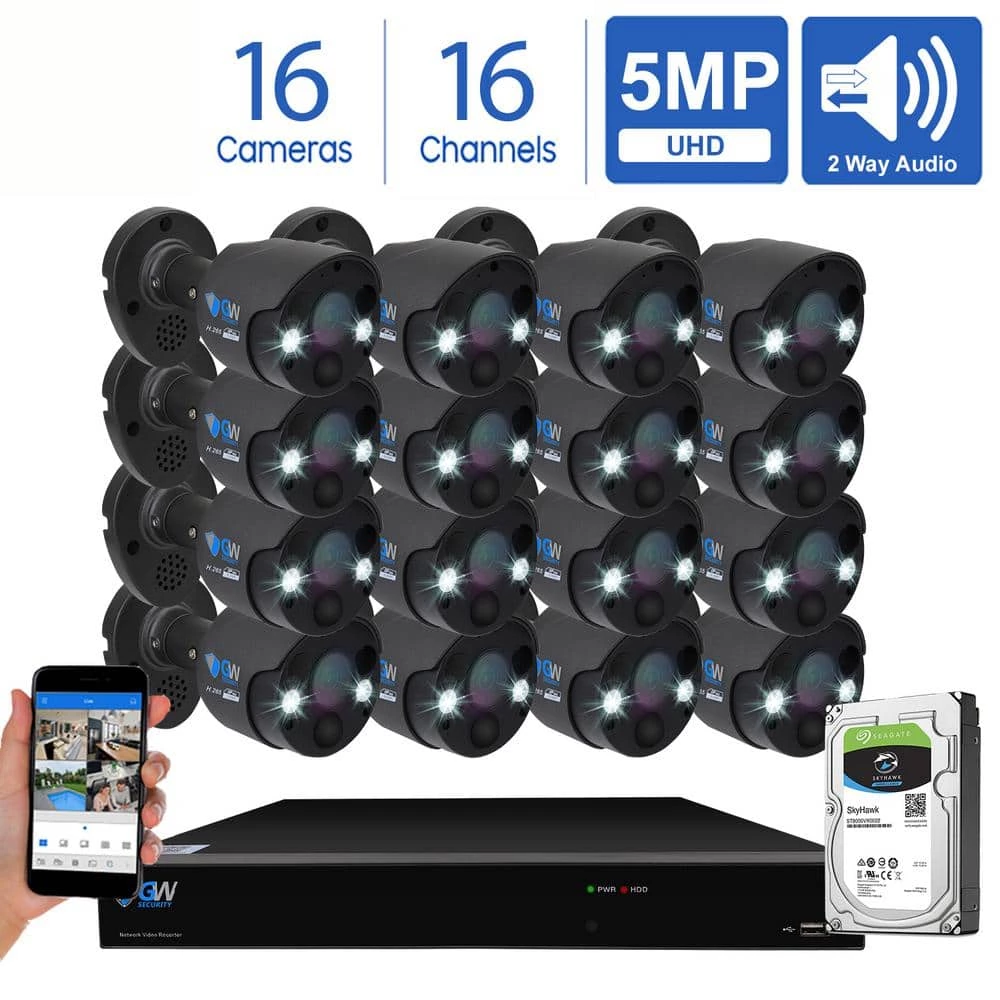 - Package includes: GW5516NPG: 16-channel H.265 NVR with 4TB hard drive, 16 x GW5538IP: 5MP bullet cameras, 8 x GWCAT100: 100 ft. CAT5 cables, 8 x GWCAT60: 60 ft. CAT5 cables, 2-year warranty and free lifetime tech support