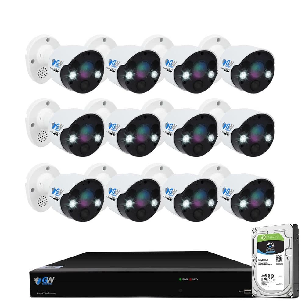 - Package includes: GW5516NPG: 16-channel H.265 NVR with 4TB hard drive, 12 x GW8538IP: 8MP bullet cameras, 6 x GWCAT100: 100 ft. CAT5 cables, 6 x GWCAT60: 60 ft. CAT5 cables, 2-year warranty and free lifetime tech support
