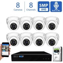 - Package includes: GW5516NPG: 16-channel H.265 NVR with 4TB hard drive, 16 x GW8538IP: 8MP bullet cameras, 8 x GWCAT100: 100 ft. CAT5 cables, 8 x GWCAT60: 60 ft. CAT5 cables, 2-year warranty and free lifetime tech support