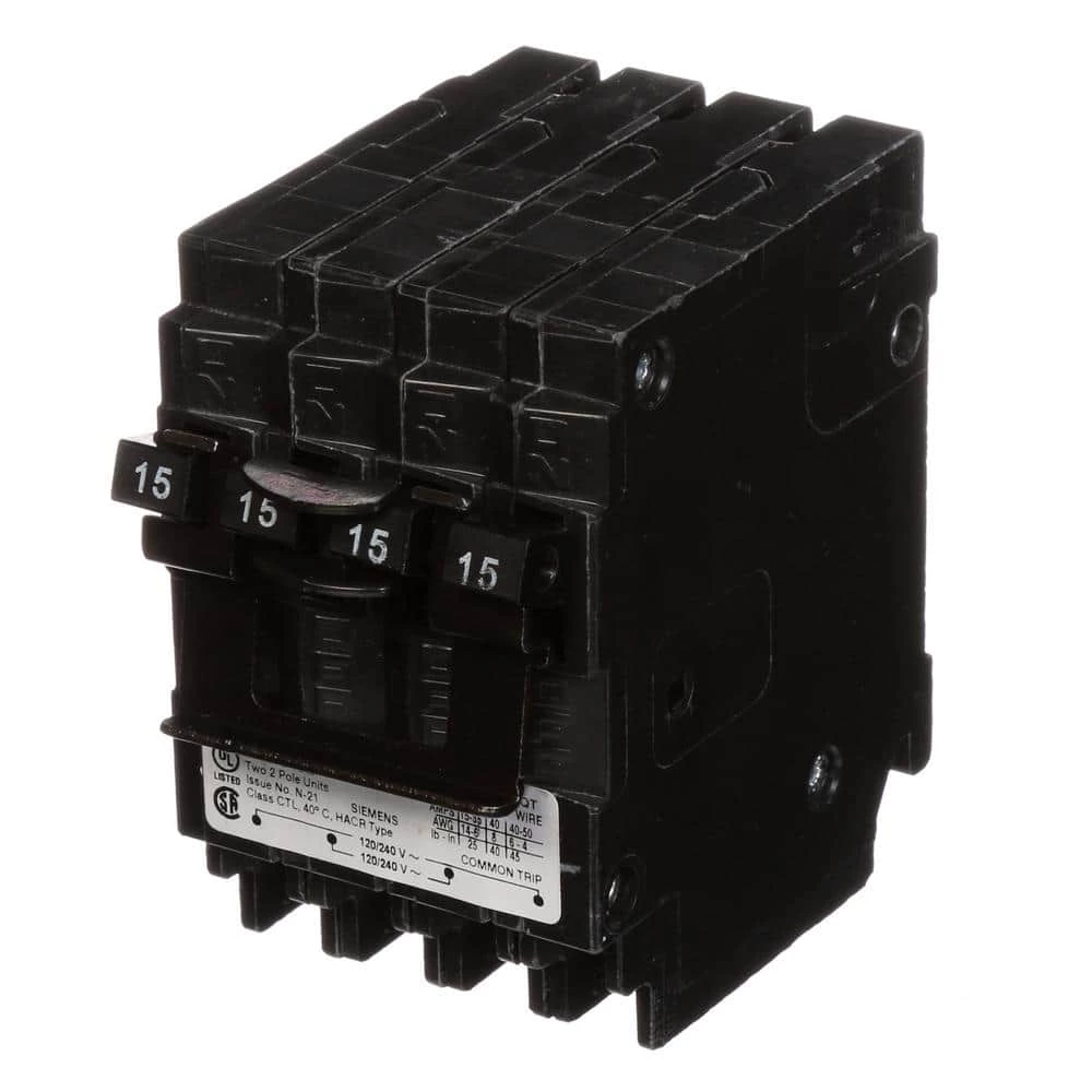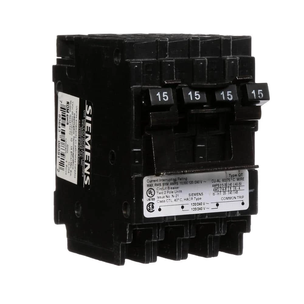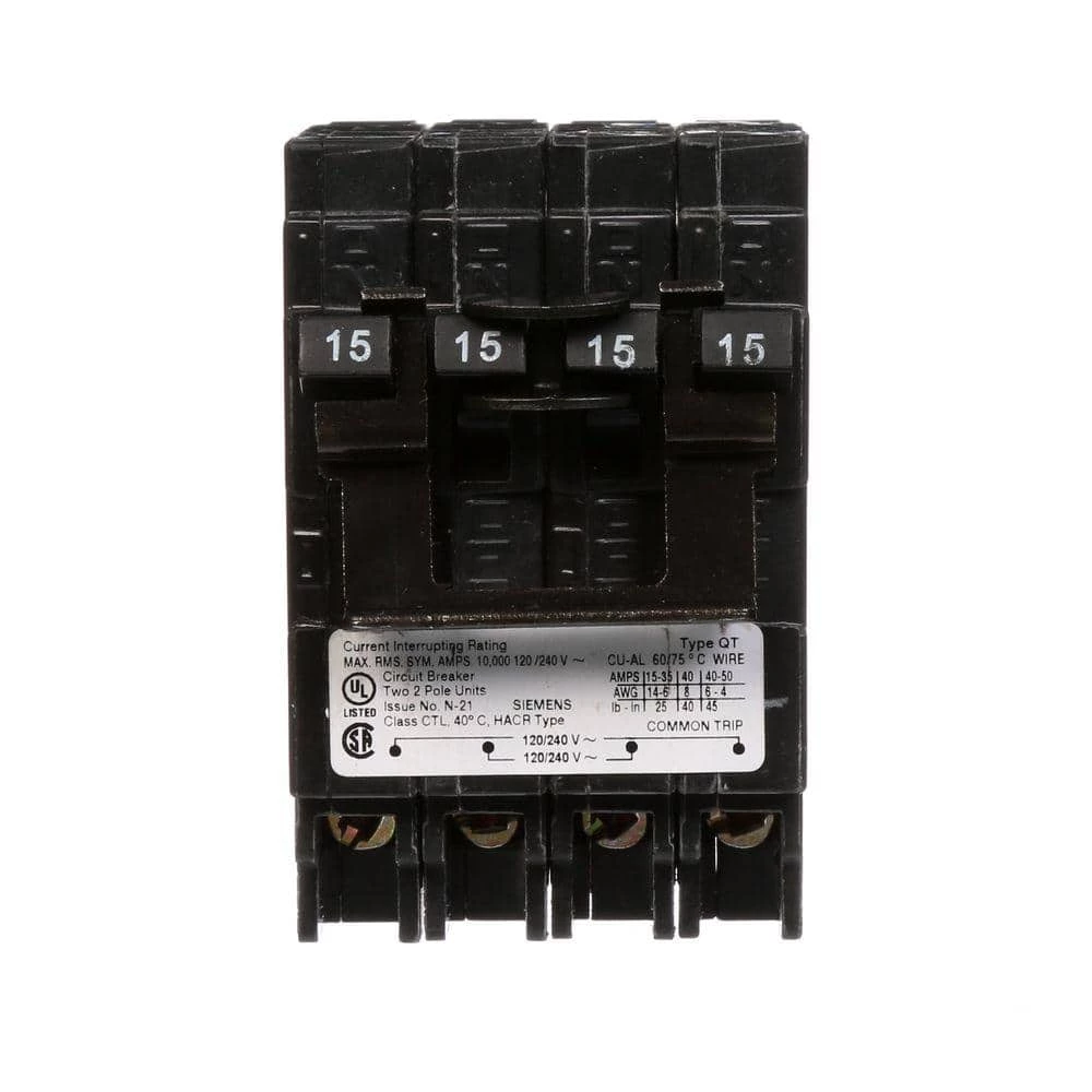 Siemens Quadplex Type QT breakers are a 1/2 in. frame per pole and are suitable for use in Siemens panels that allow CTL type QT breakers. This breaker has (2) 15 Amp Double Poles in one 2 in. housing. Siemens strongly recommends against the use of used breakers. The installation of used breakers in a Siemens panel will void the warranty on the panel. Siemens does not sell used breakers and has not approved any 3rd party sellers to do so.