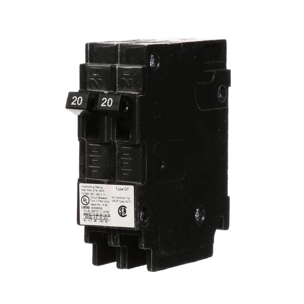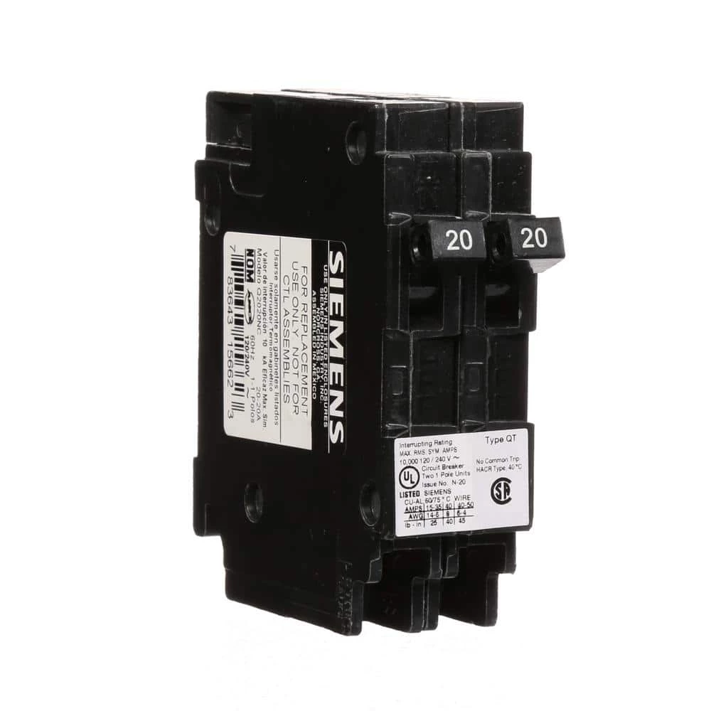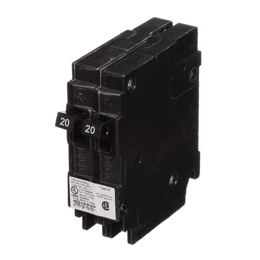 - Tandem 20 Amp 120-Volt type QT non-current limiting circuit breaker