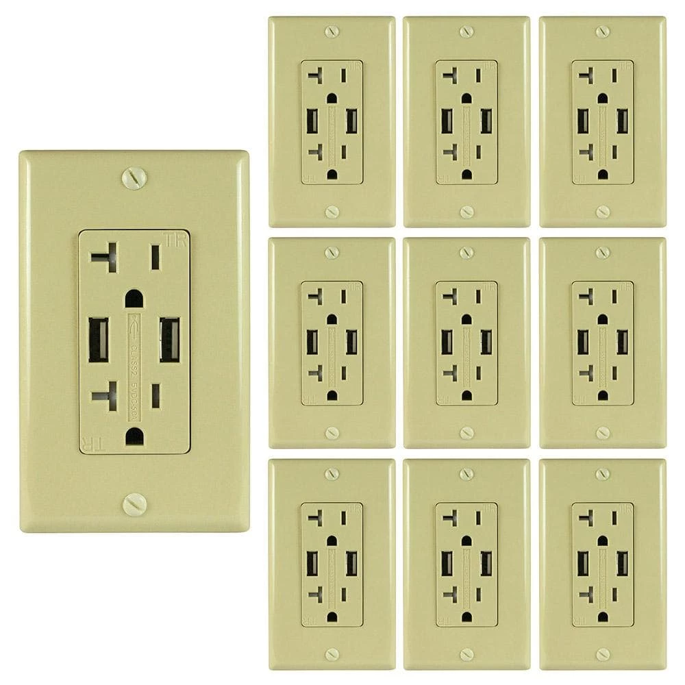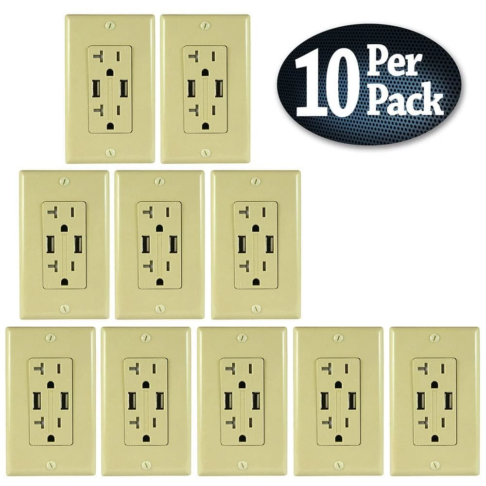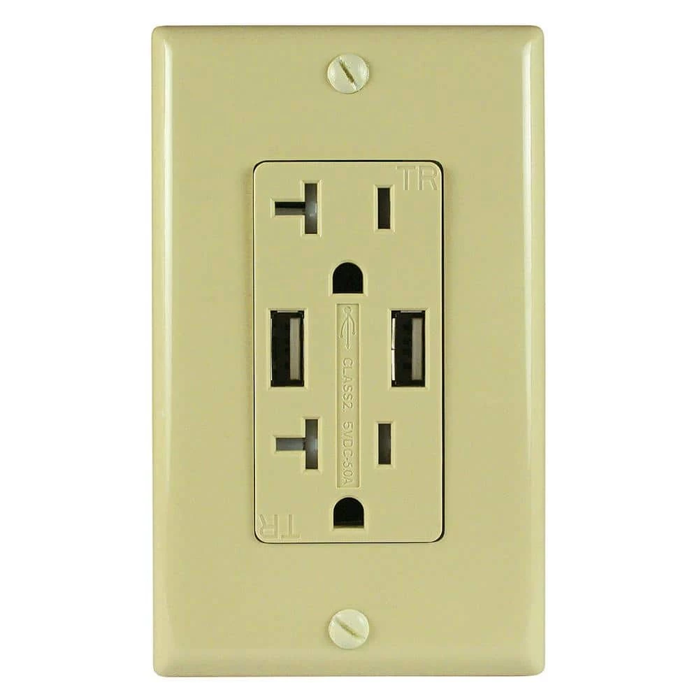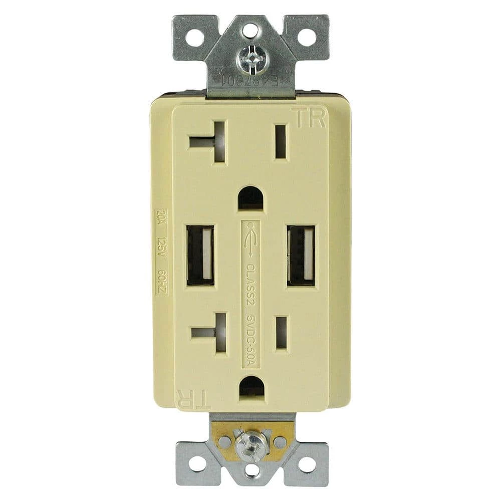 The ATUR5.0 is the most powerful ac wall outlet with USB charging ports at 5 Amp charging capacity. This fast charge USB duplex receptacle is UL Listed and features 20 Amp outlets that are tamper resistant, TR making them child safety compliant. This fast charge 2 port USB wall charger is designed to fit in all standard wall outlet boxes and can be used in existing and new installations. This powerful 5 Amp electrical outlet with USB charging is ideal as a phone charger outlet or to charge other USB devices.