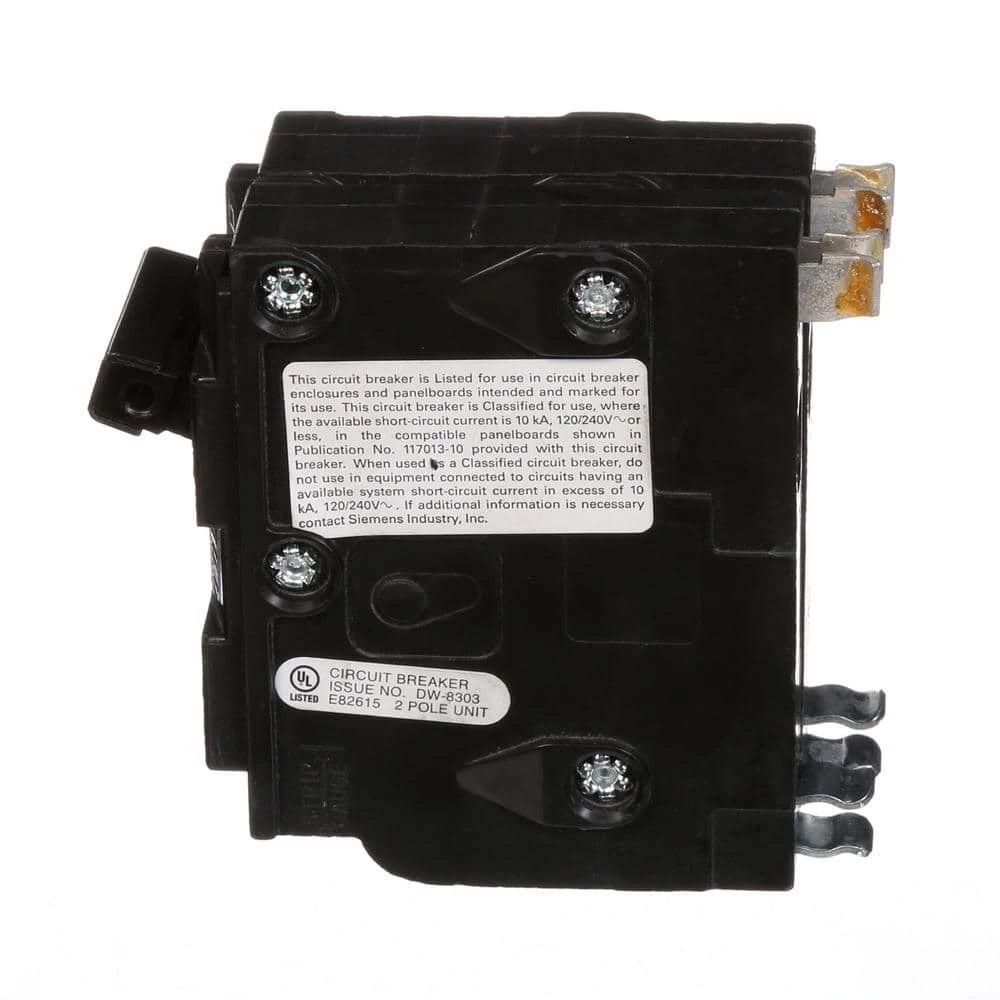 Siemens QO replacement breakers are UL listed for use in Square D QO brand load centers and are ideal for replacement of existing breakers or if expansion circuits are required. These 3/4 in. breaker snap on to the QO type bussing. All QD breakers are supplied with load side connectors suitable for 60/75 C wire and are calibrated for 40 C maximum ambient applications. Siemens QD circuit breakers are available in 15 Amp to 60 Amp, single and double pole configurations and are rated at 120/240-Volt AC.