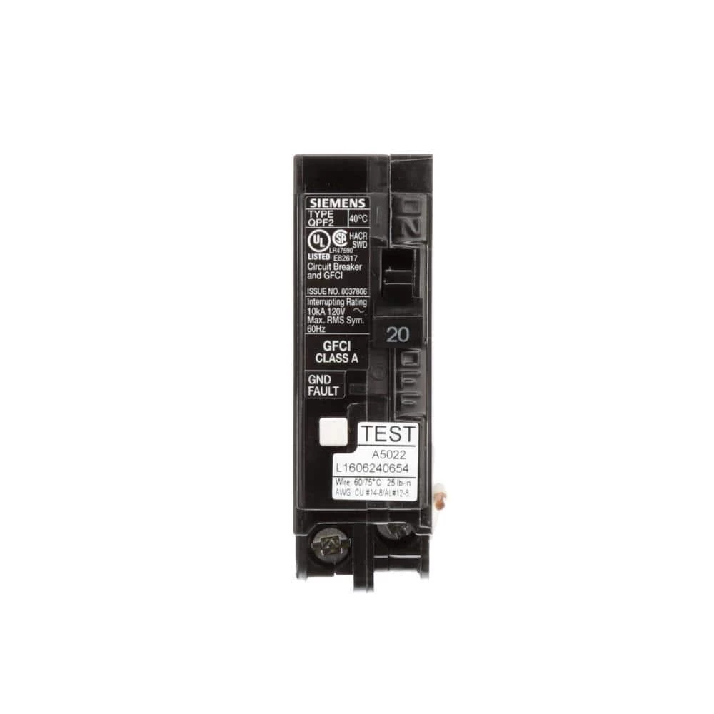 - Single pole, 120-Volt, 20 Amp GFCI circuit breaker