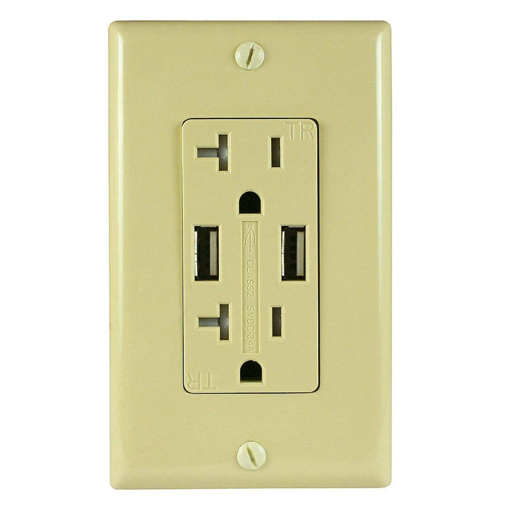 - Includes AC outlet with 2 USB chargers and matching wallplate