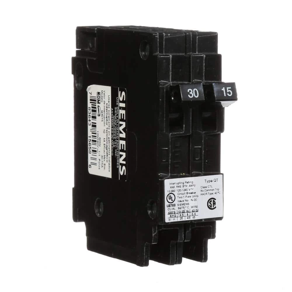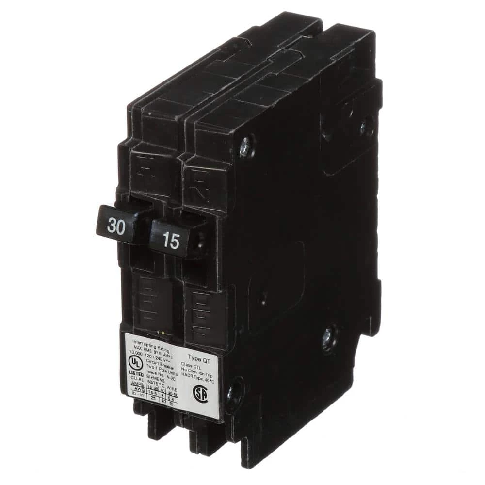 Siemens duplex type QT breakers are a 1/2 in. frame per pole and are suitable for use in Siemens panels that allow CTL type QT breakers. This breaker has a 30 and 15 Amp single pole breakers in one 1 in. housing. Siemens strongly recommends against the use of “used” breakers. The installation of used breakers in a Siemens panel will void the warranty on the panel. Siemens does not sell used breakers and has not approved any 3rd party sellers to do so.