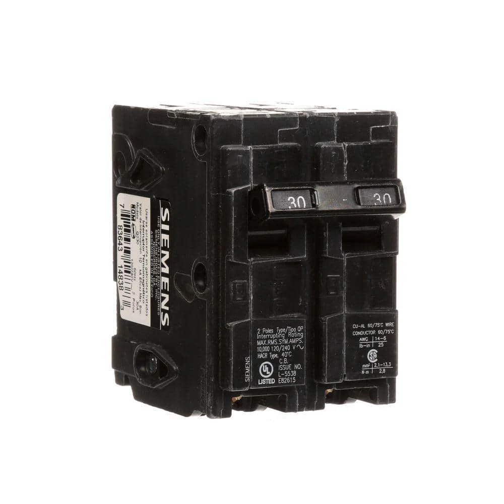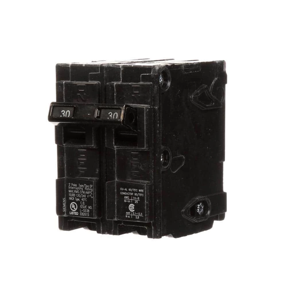 - 2-pole, 30 Amp, 120-Volt/240-Volt type QP interchangeable circuit breaker