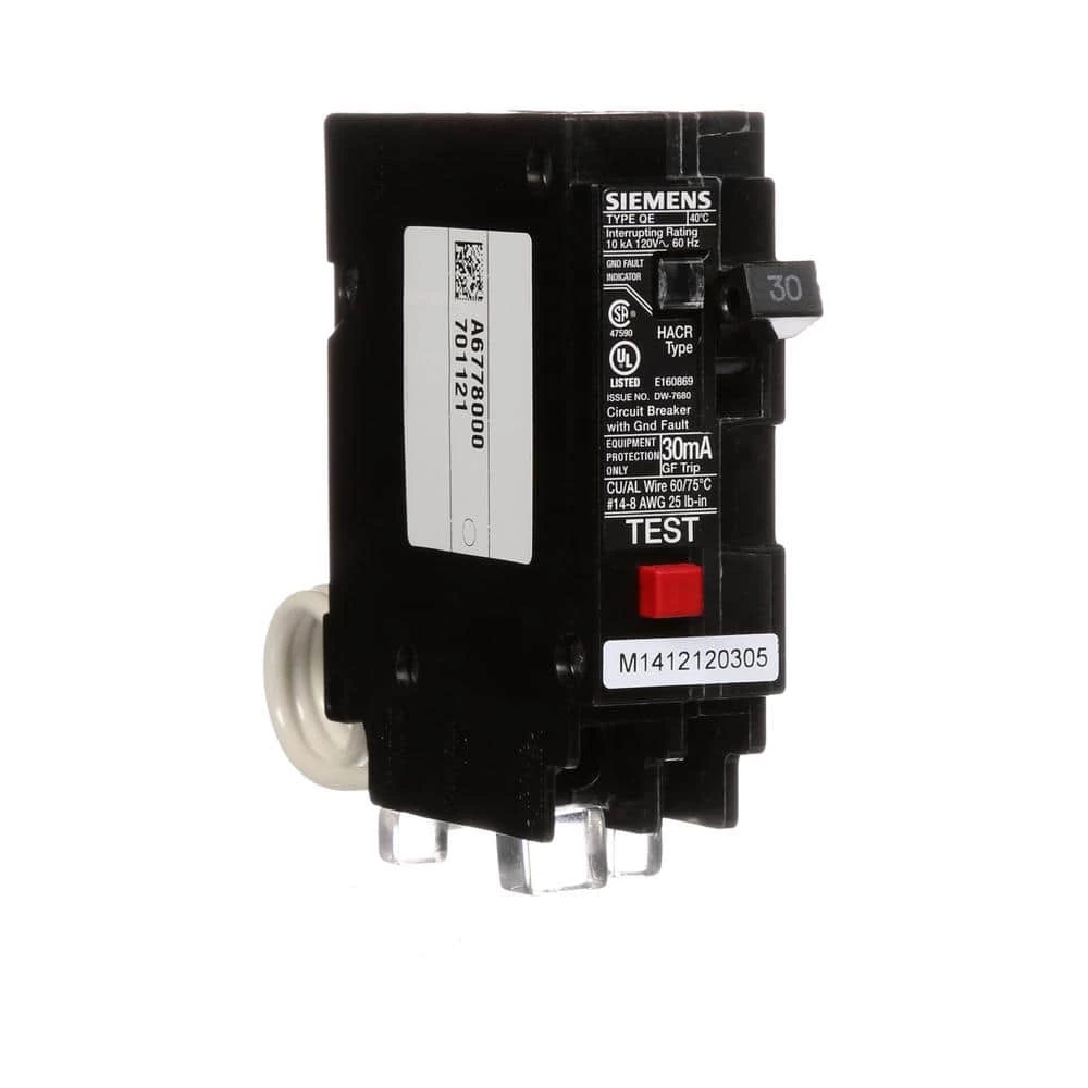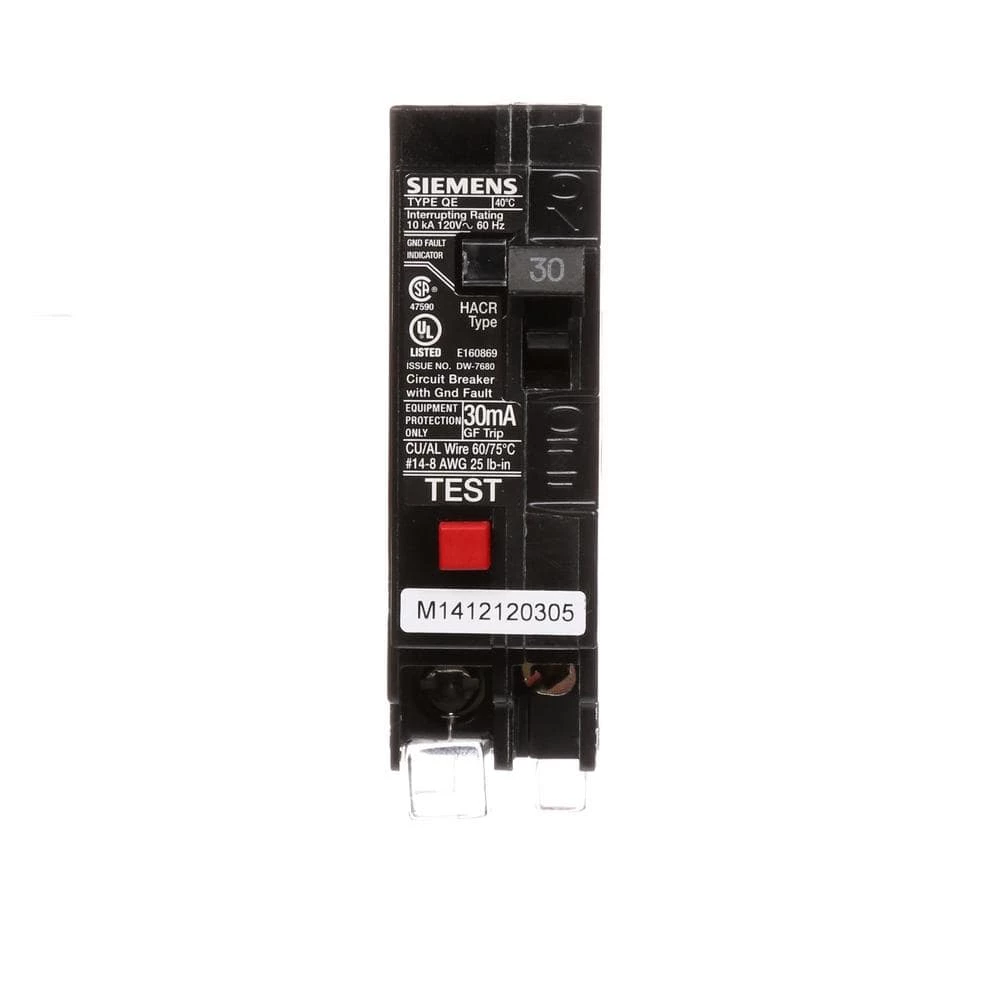 Siemens ground fault equipment protection circuit breakers provide protection to equipment from damaging line-to-ground fault currents. This circuit breaker will detect line-to-ground faults and de-energize the circuit for all ungrounded conductors of the circuit. If the current going to the equipment is greater than 30 mA than the current coming back the GFCI will open the circuit stopping the flow of electricity.