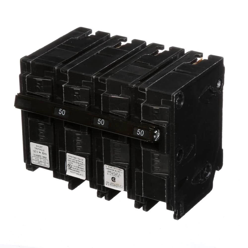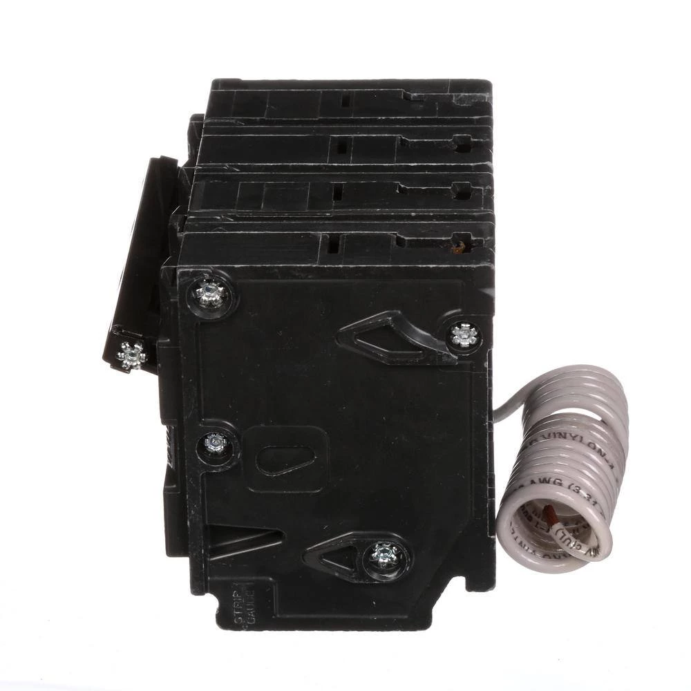 Shunt trip breakers operate with the same functionality of a standard type breaker providing over current and short circuit protection, as well as switching capability. The Shunt trip breakers provide an additional function in that it can be tripped remotely through the use of a built in magnetic coil that can be energized to trip the breaker. Each Shunt trip breaker will have an additional 1 in. pole attached to it to house the magnetic coil. The additional pole does not plug onto and is not energized by the bus bar.