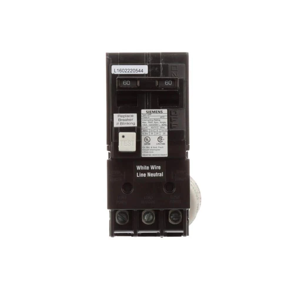 - Double-pole, 240-Volt, 60 Amp GFCI circuit breaker