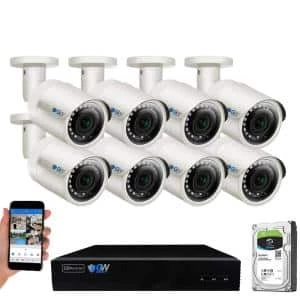 - Package includes: GW4108EP: 8-channel H.265 NVR with 2TB hard drive, 8 x GW5037IP: 5MP bullet cameras, 4 x GWCAT100: 100 ft. CAT5 cables, 4 x GWCAT60: 60 ft. CAT5 cables