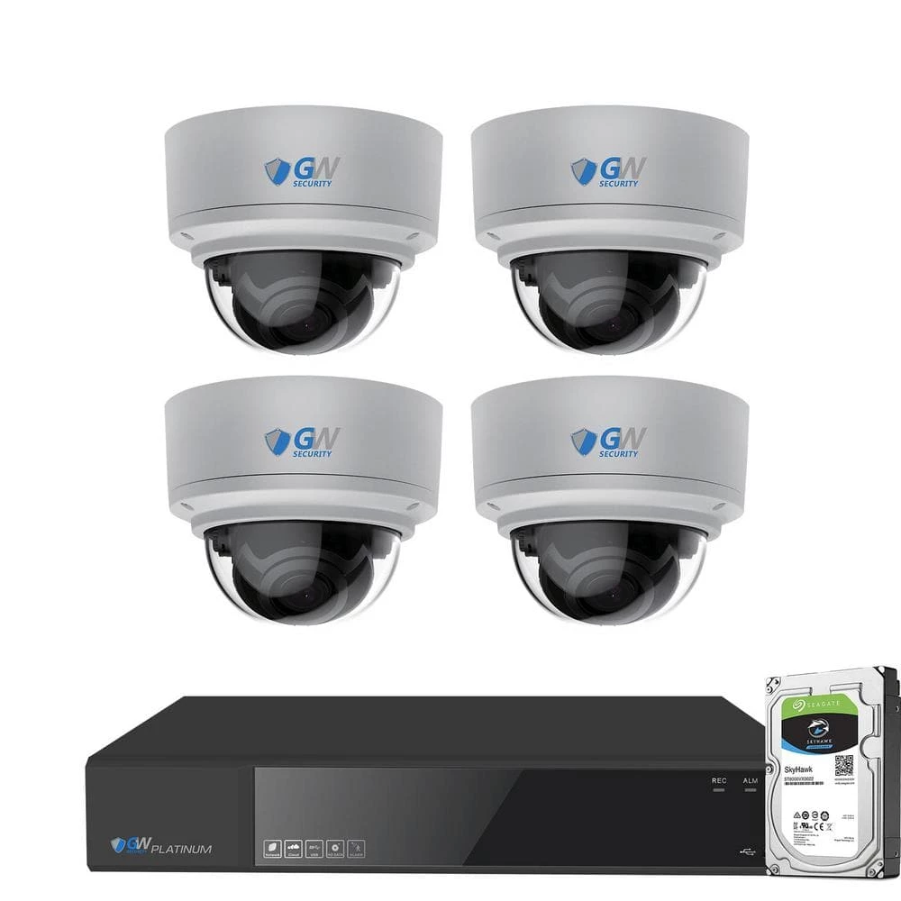 - Package includes: GW7808NP: 8-channel H.265 NVR with 1TB hard drive, 4 x GW8171MMIC: 8MP dome cameras, 2 x GWCAT100: 100 ft. CAT5 cables, 2 x GWCAT60: 60 ft. CAT5 cables