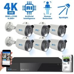 - System has 15 AI smart functions including, face recognition search, face detection, area intrusion, line crossing, region entrance/exiting, object missing, parking detection, etc., you can customize motion detection zones with 15 AI smart functions and adjust motion sensibility, you will get notifications only when the human or AI smart motion is detected, the useless motion caused by natural sources will be filtered, it will greatly reduce annoying false alerts