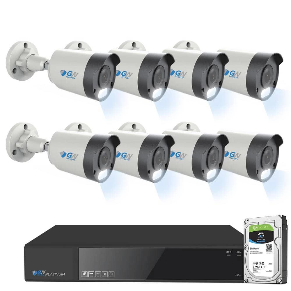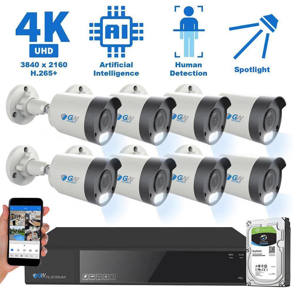 - Package includes: GW7808NP: 8-channel H265 NVR with 2TB hard drive, 8 x GW8137MIC: 8MP bullet cameras, 4 x GWCAT60: 60 ft. cables, 4 x GWCAT100: 100 ft. cables