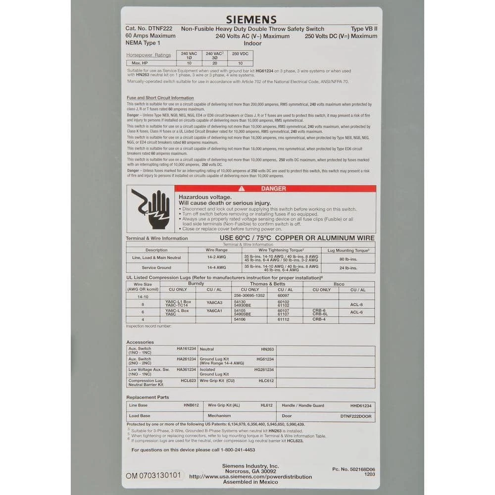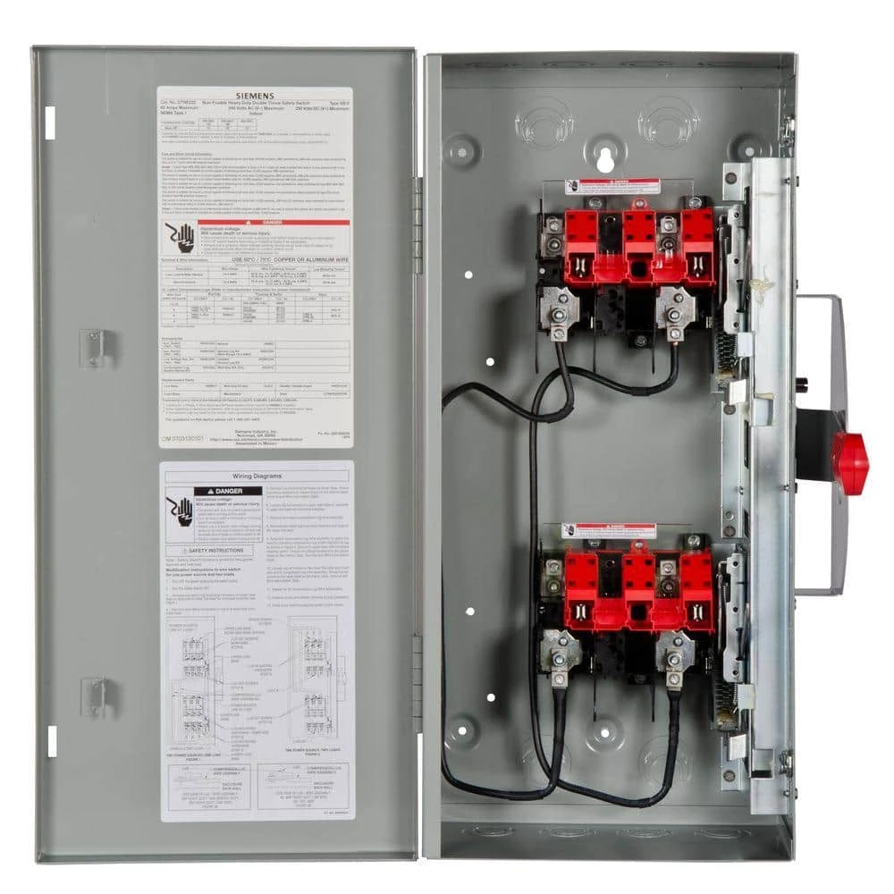 - 60 Amp, single phase, 120/240-Volt, non-fusible safety switch