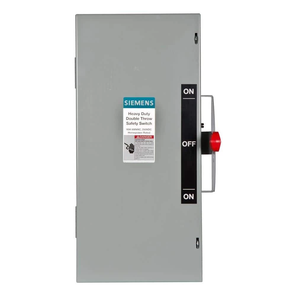 Double Throw switches are intended to transfer loads from one power source to another. All 2 and 3-pole double throw switches are suitable for use as service equipment including non-fusible versions when used in combination with a UL listed circuit breaker or fusible switch. All are UL Listed and both horsepower and load break rated. Switches are rated for use on systems up to 10,000 Amp when protected with Class H fuses or 100,000 Amp when protected with Class R or Class T fuses. They can also be used to connect a single source of power to either of 2 loads.