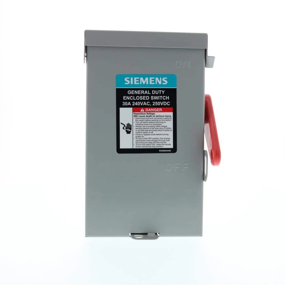 General Duty Safety Switches are intended for applications where reliable performance and continuity of service are needed. But where duty requirements are not severe and usual service conditions prevail. These switches are intended for use primarily with supply circuits rated 240-Volt AC or less where the available fault current is less than 100,000 Amp when used with Class R or T fuses or 10,000 Amp max when used with Class H fuses.
