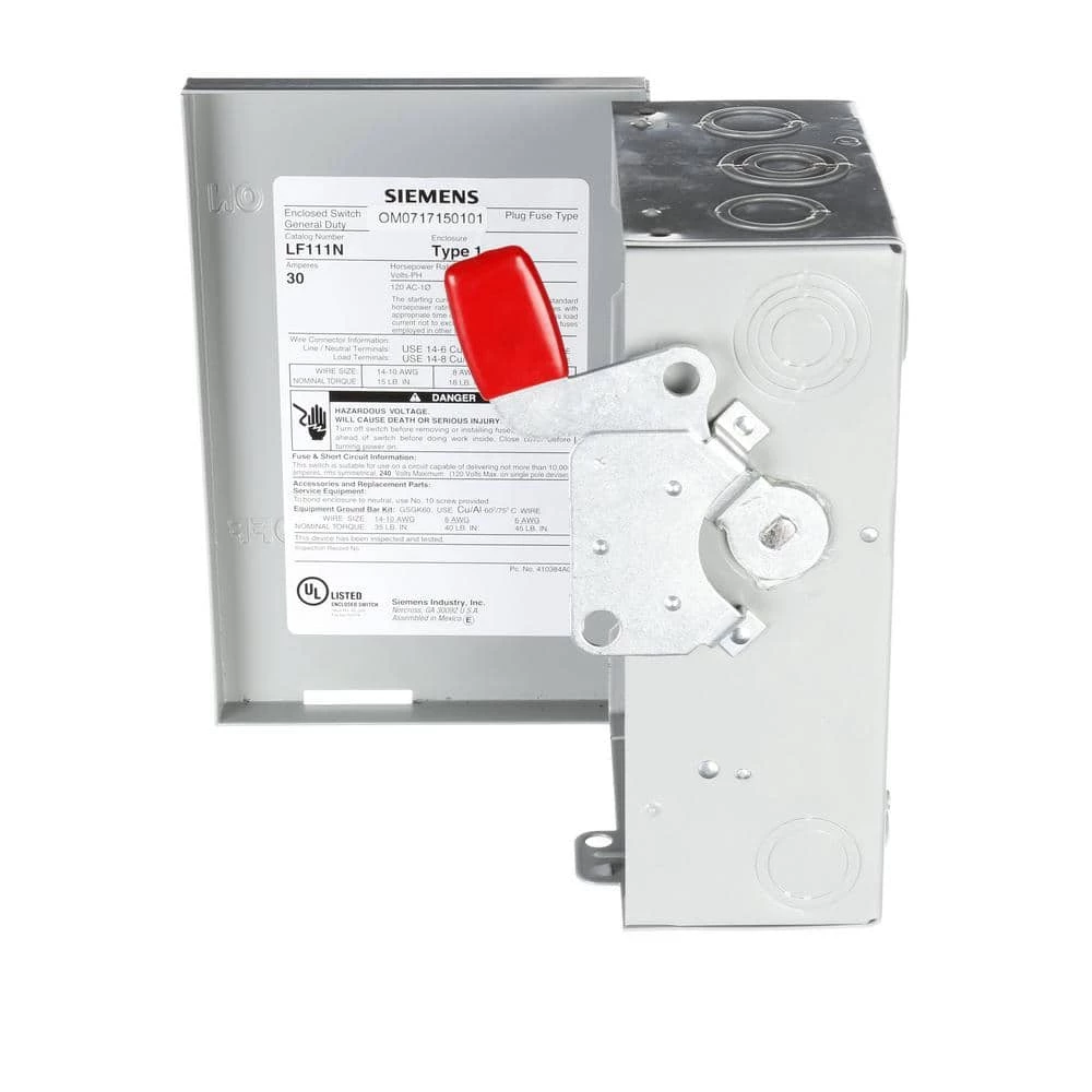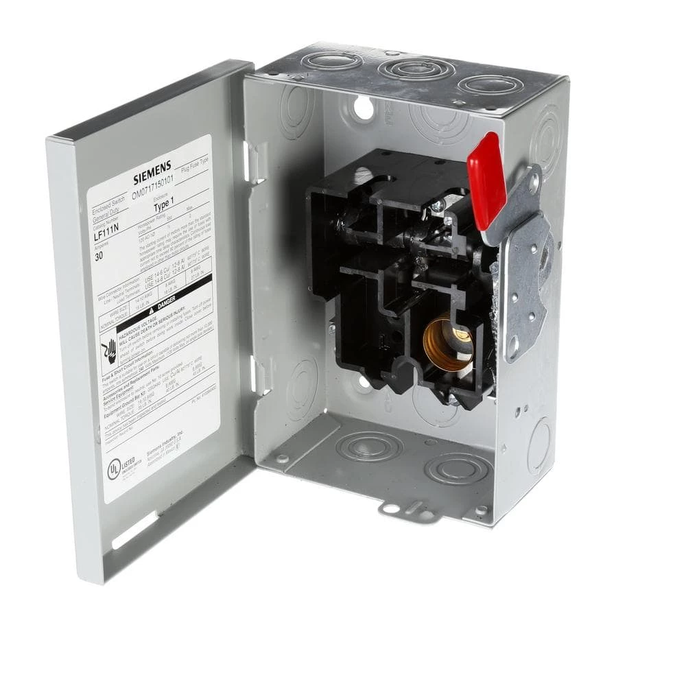 General Duty Safety Switches are intended for applications where reliable performance and continuity of service are needed, but where duty requirements are not severe and usual service conditions prevail. These switches are intended for use primarily with supply circuits rated 240-Volt AC or less where the available fault current is less than 100,000 Amp when used with Class R or T fuses or 10,000 Amp max when used with Class H fuses.