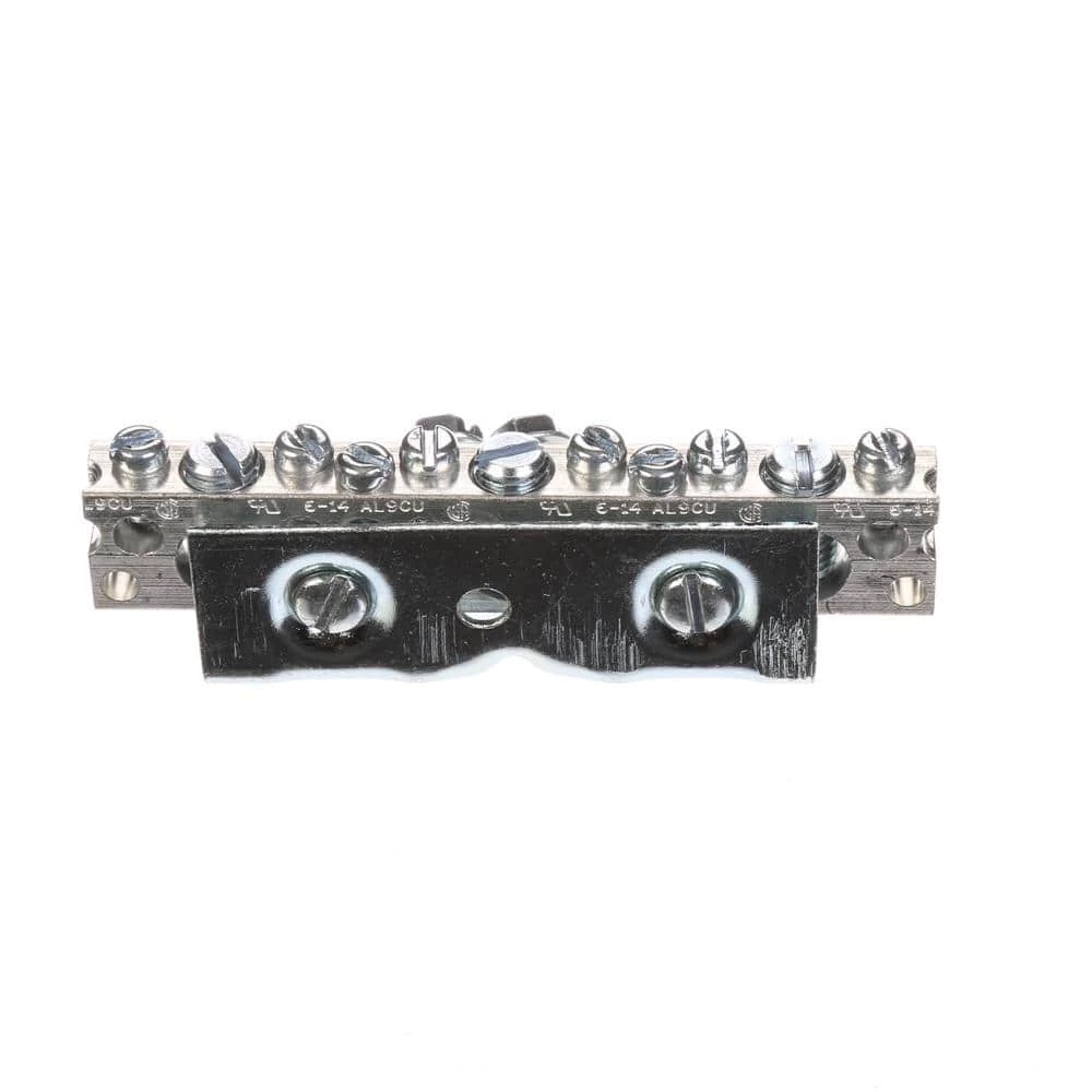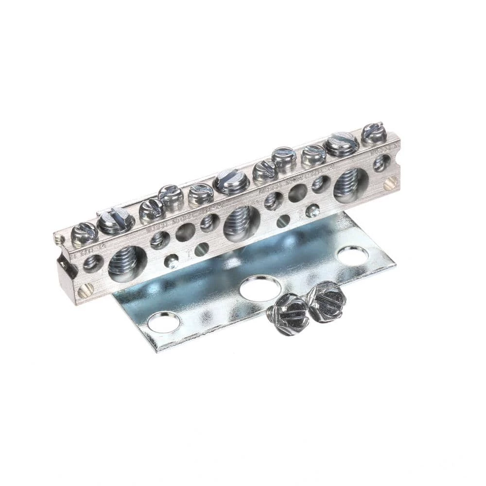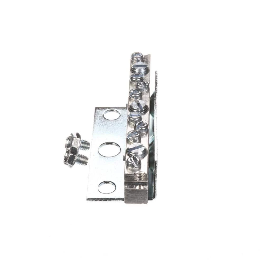 - Insulated neutral ground bar with 8 small and 3 large connectors, 3-1/2 in. long