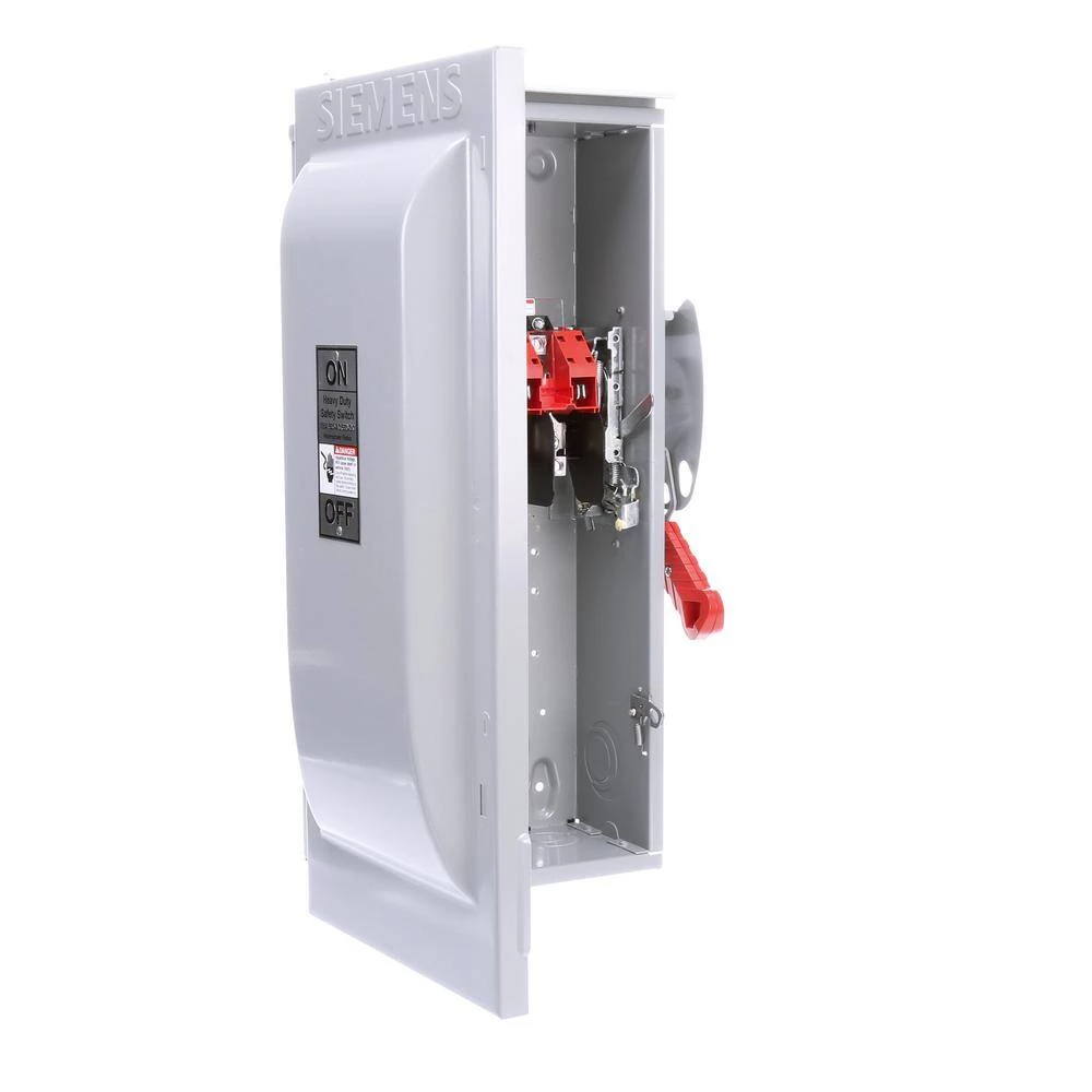 - 100 Amp, 2 pole, 600-Volt, 2 wire non-fusible safety switch