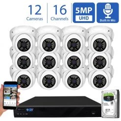 16-Channel 8MP 4TB NVR Security Camera System with 12 Wired Dome Motorized Zoom Camera, Color Night Vision, Microphone by GW Security