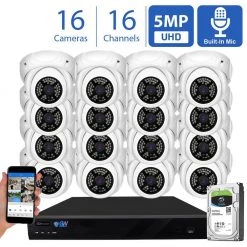 16-Channel 5MP 4TB NVR Security Camera System w/ 16 Wired Bullet Cameras 2.8 mm Fixed Lens Built-In Mic Human Detection by GW Security